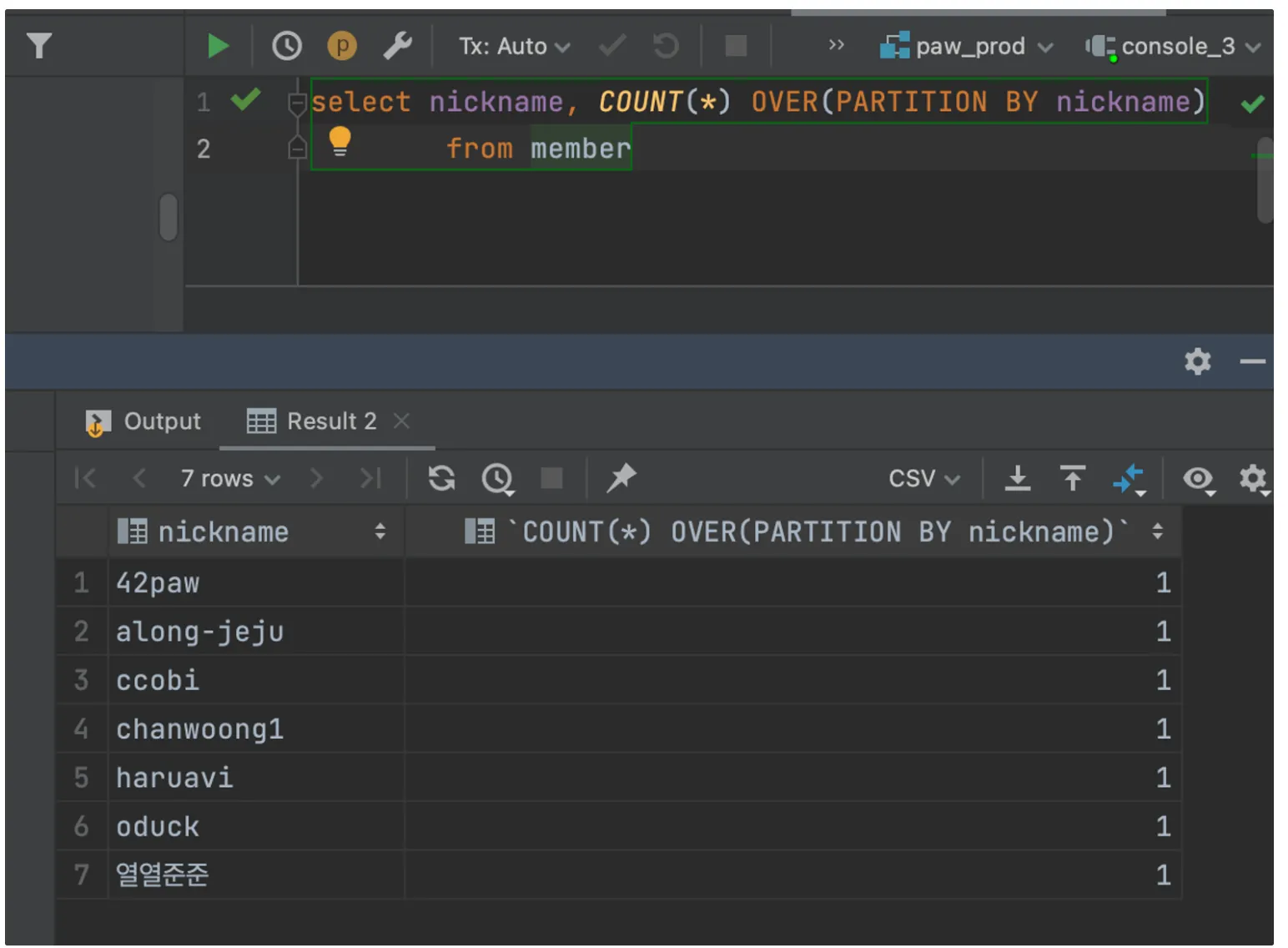 기본적인 구문은 집약 함수 OVER(PARTITION BY 키)으로 구성된다.