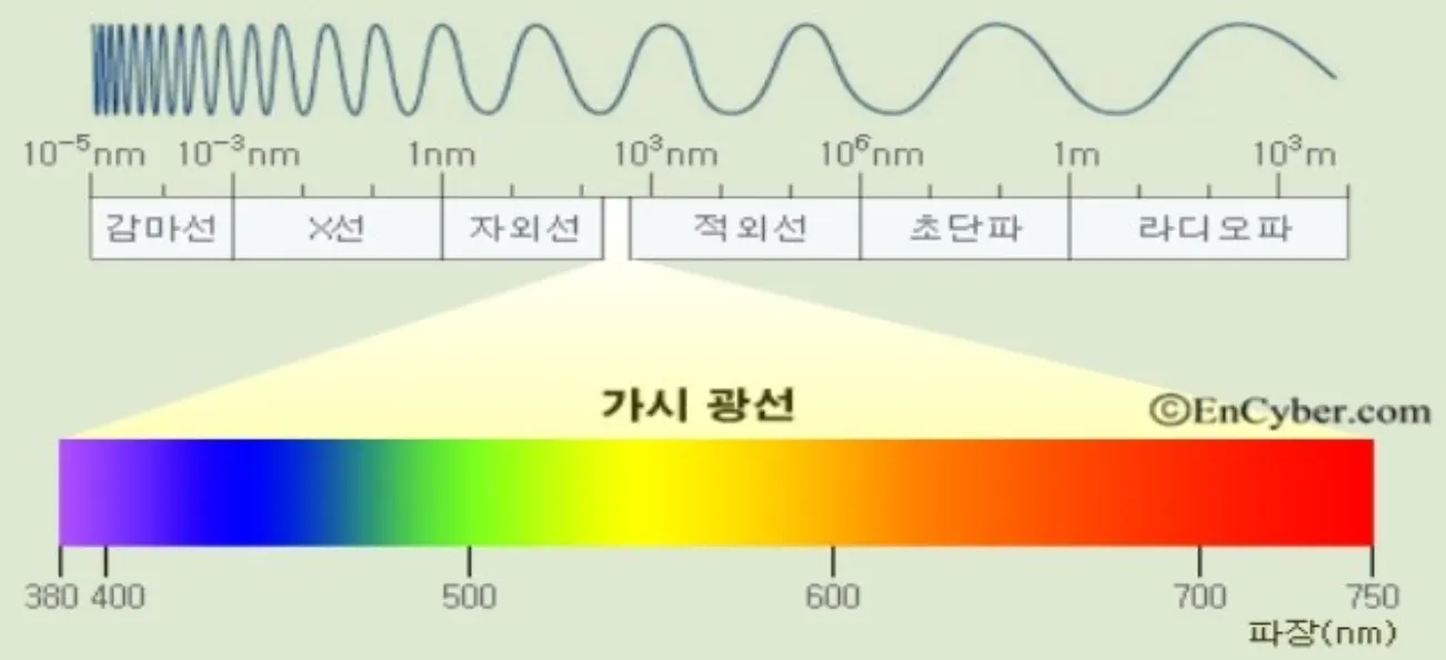 빛은 이와 같이 결국 파장을 가진 파동이기 때문에, 파동성을 가지고 있다는 것 입니다.