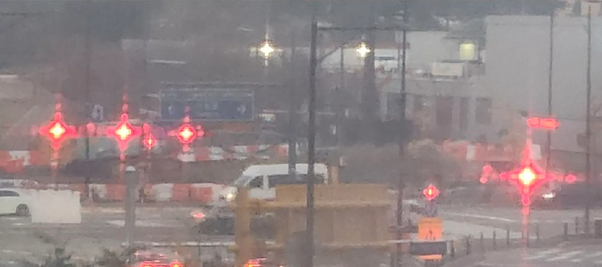 어느날 운동하다가 창문 밖을 봤는데, 보는 각도에 따라 신호등이 보이는게 달라져 신기해서 찍은 사진입니다.