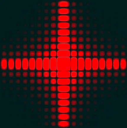 이러한 원리로 방충망을 통해 사진을 찍으면 방충망의 가로-세로로 나누어진 구멍들을 통해 빛이 통과하고, 빛이 서로 간섭하여 이와 같이 십자 모양으로 빛이 퍼지면서 간섭 무늬가 발생하게 됩니다.