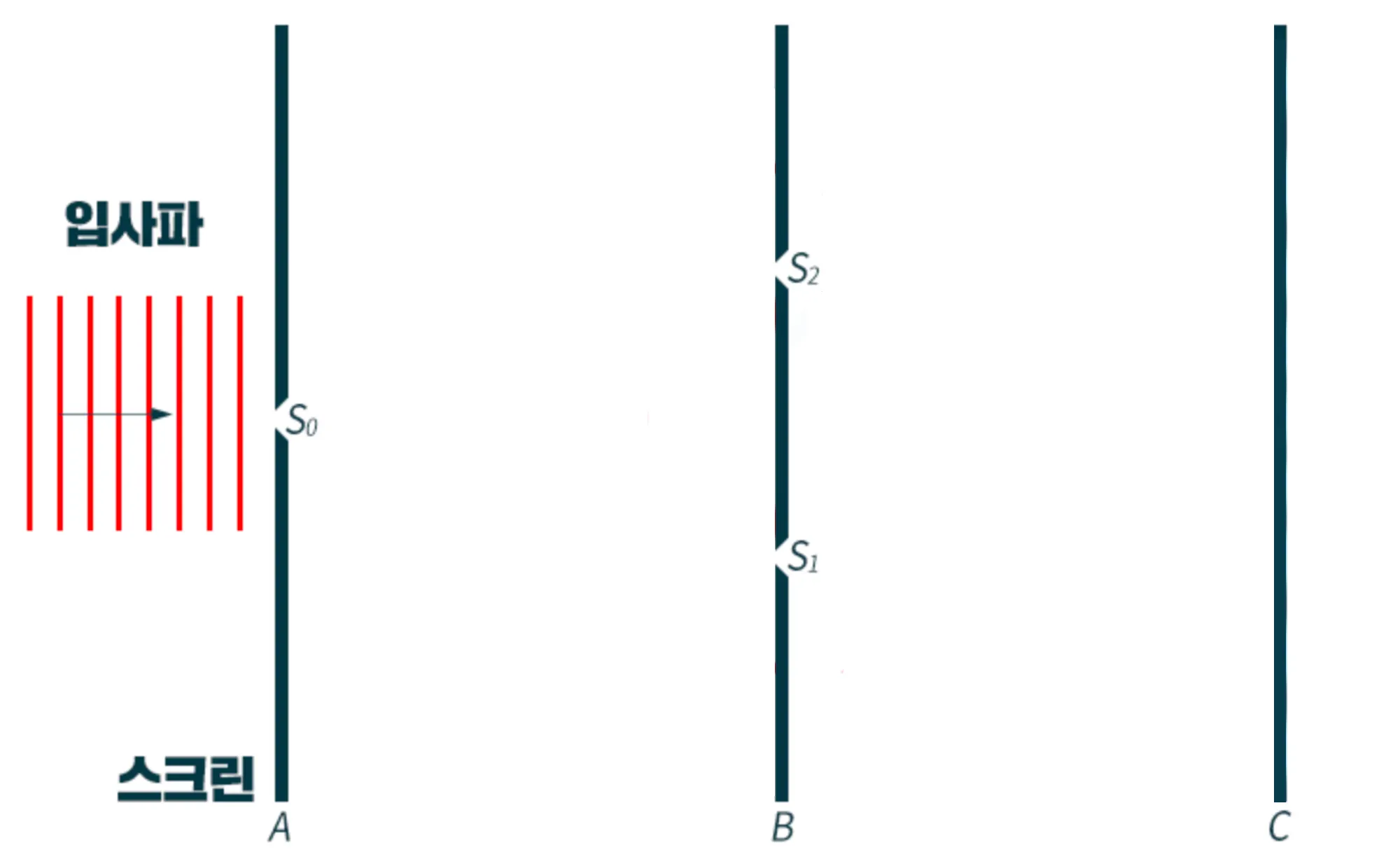 C 스크린에 위의 사진처럼 간섭 무늬가 생겼습니다.