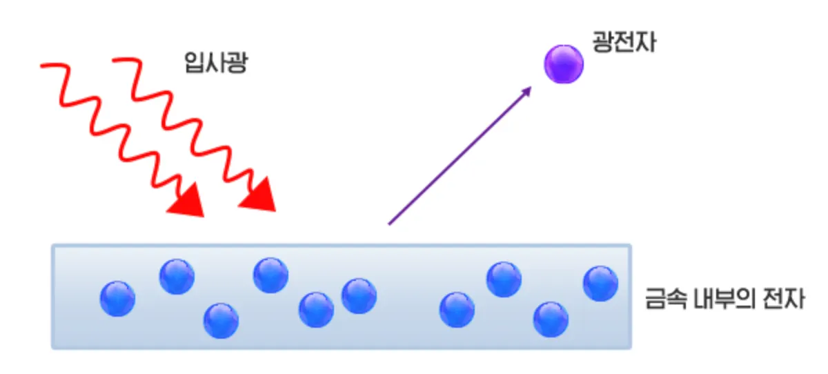 이처럼 금속판에 빛을 쏘게 되면 빛 입자가 금속판 내부의 전자와 부딪혀
