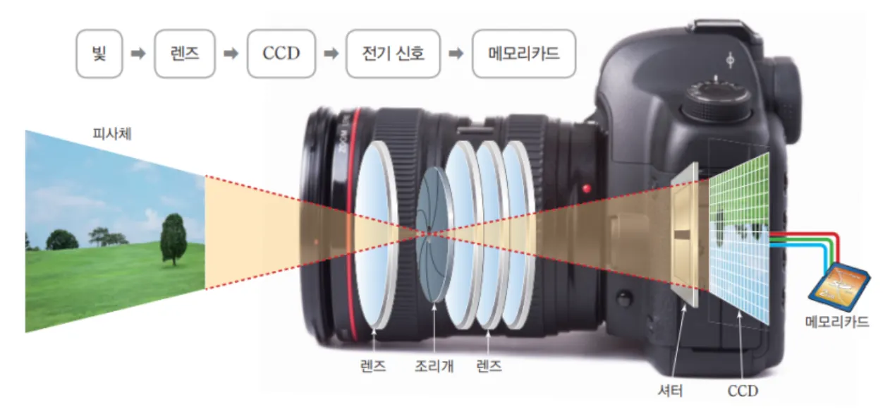 빛은 위처럼 파동의 성질도 가지고 있지만 입자의 성질도 같이 가지고 있습니다. 이를 활용한 대표적인 예가 디지털 카메라의 이미지 센서입니다.