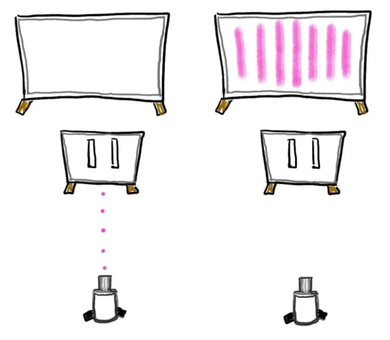 이와 같이 작은 창(window)을 뚫어놓은 슬릿 2개를 겹쳐놓고, 스크린에 수직 방향으로 빛을 쏘았더니,