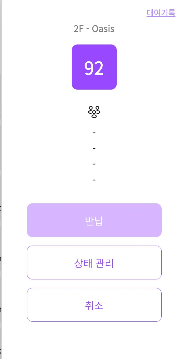 사물함 번호/사용자 id로 검색하거나, 층 별 관리 페이지에서 해당 사물함을 클릭하면 해당 사물함에 대한 정보를 확인할 수 있습니다.