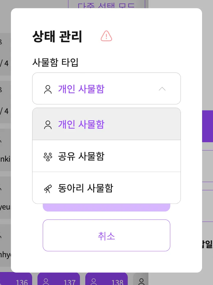 다중 선택 모드를 통해 여러개의 사물함을 선택할 수 있습니다.
