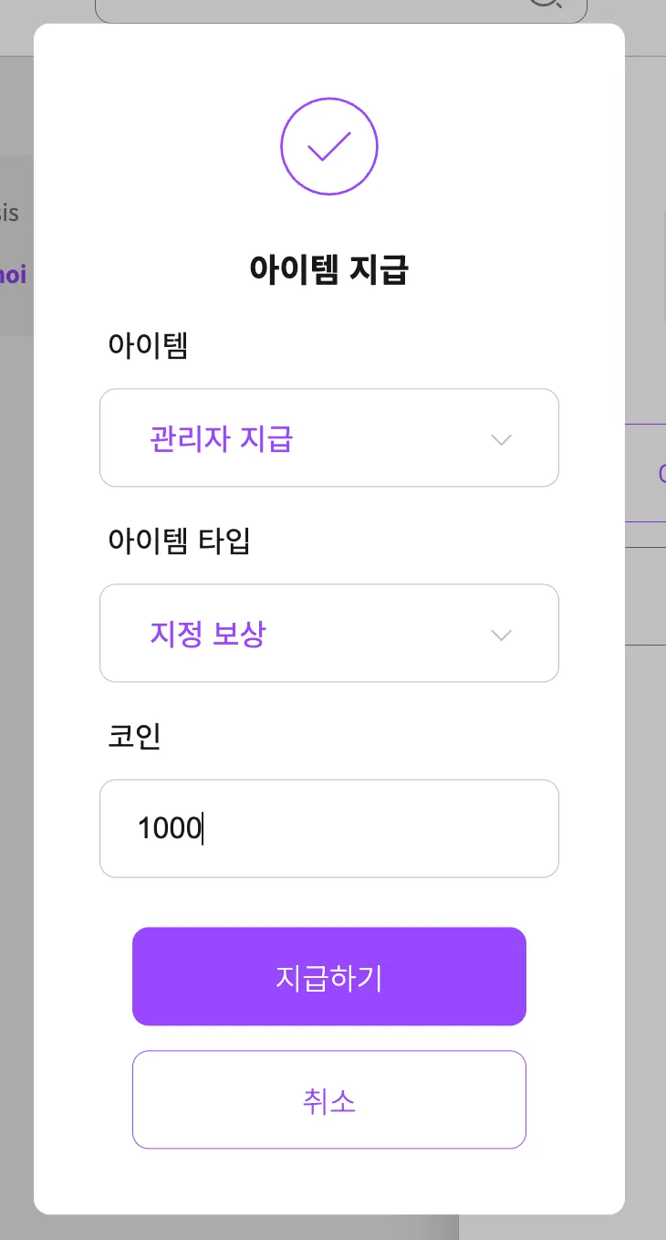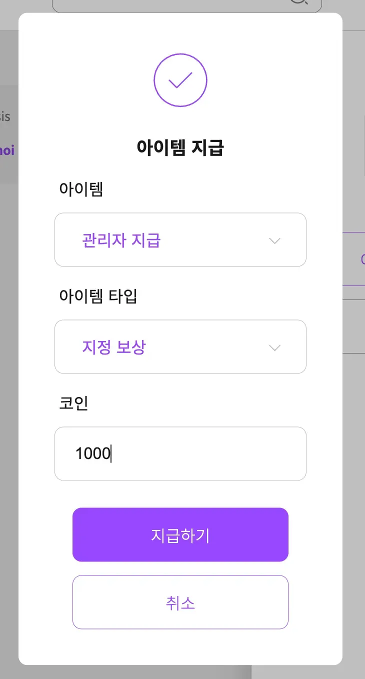 특정 사용자에게 재화/아이템을 지급할 수 있습니다.