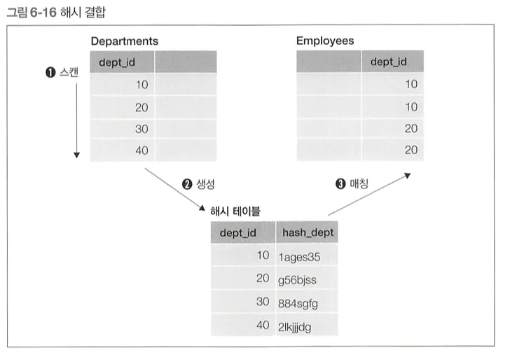 우선 작은 테이블을 스캔하고, 결합 키에 해시 함수를 적용하여 해시값으로 변환