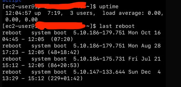 오전 4시 45분에 서버 인스턴스가 재가동되었다는 로그가 남아있었다.