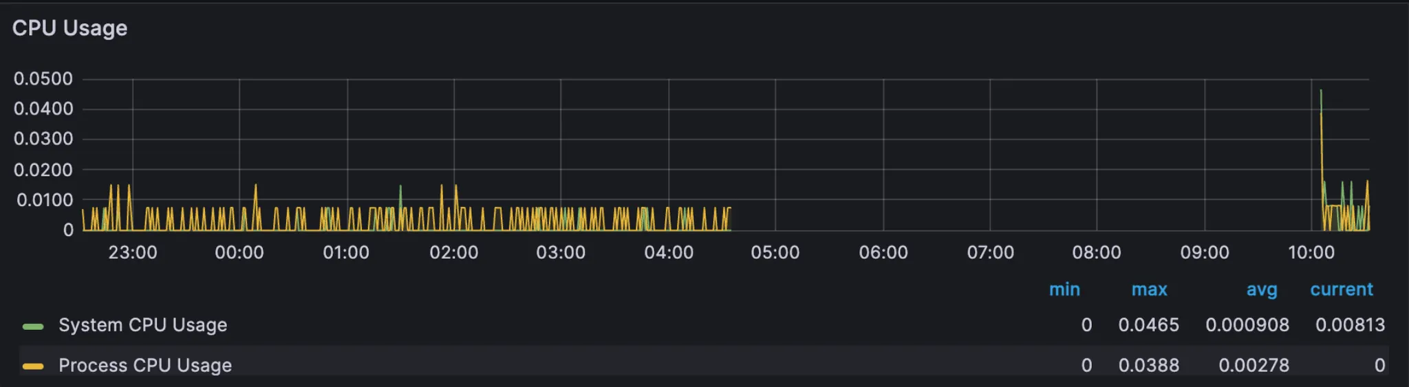 2023/10/16 오전 4시 30분 경에 서버가 내려간 것을 확인했지만 그라파나나 핀포인트를 확인해봐도 해당 시간에 이상 증상이 딱히 발견되지 않았다…