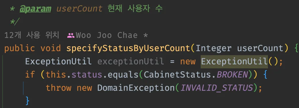 까비 프로젝트에서 사용하는 ExceptionUtil이 인스턴스화가 된다..