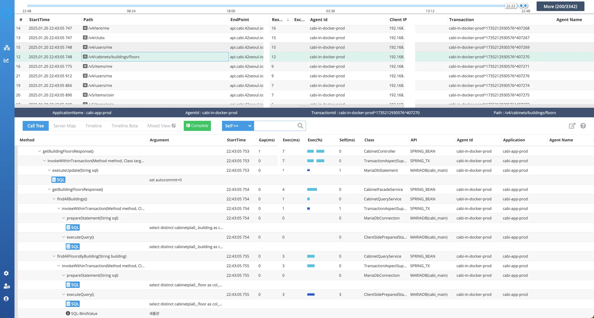 특정 메소드나 서비스에서의 지연을 분석할 수 있습니다.