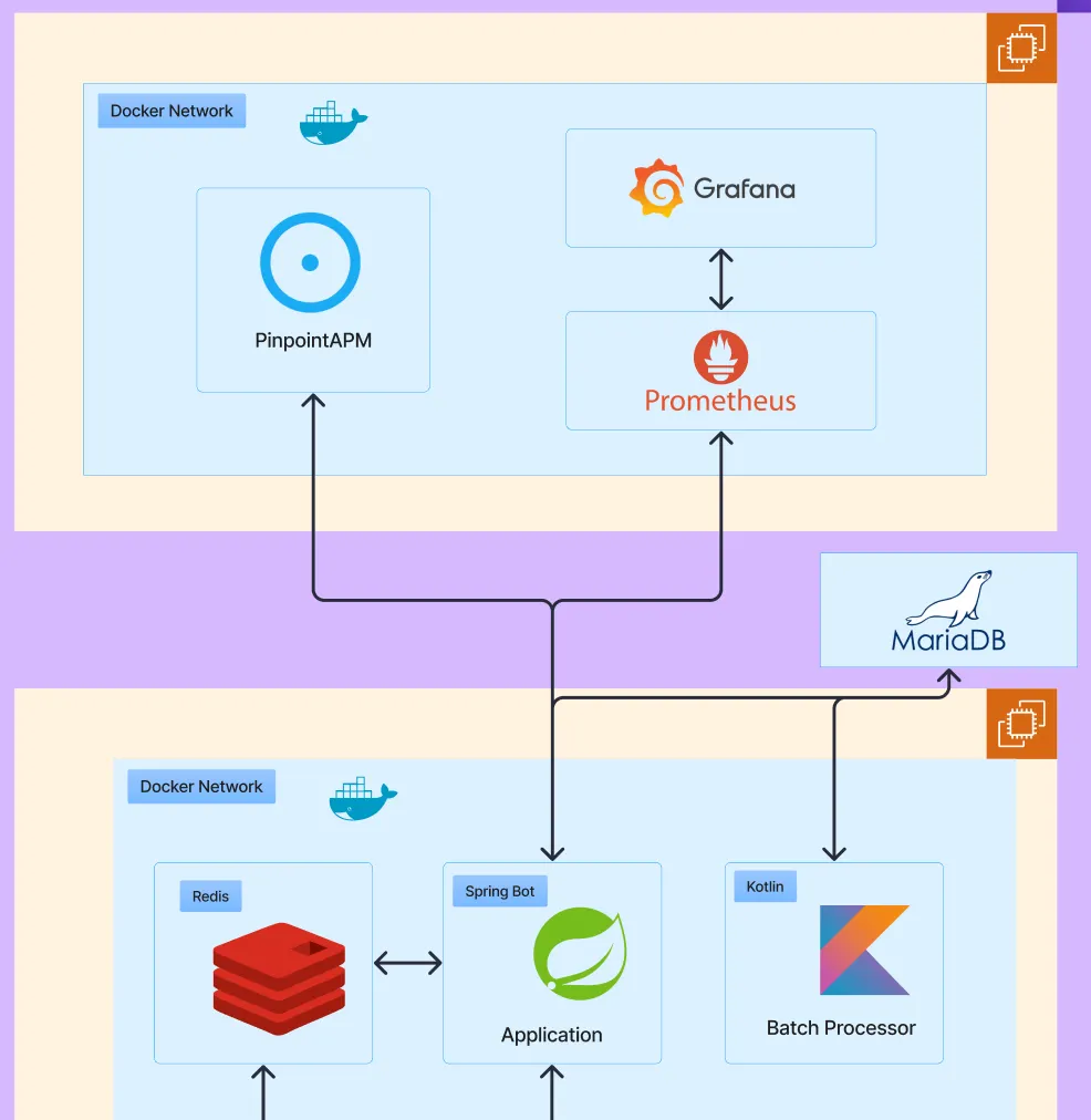 스프링에서 수집된 정보를 각각 PinpointAPM과 Prometheus로 보내 이를 모니터링할 수 있습니다.