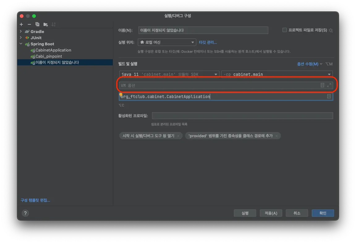 JVM 옵션 넣어주는 것도 Application 클래스 코드에 직접 입력이 가능했던 것 같습니다..!