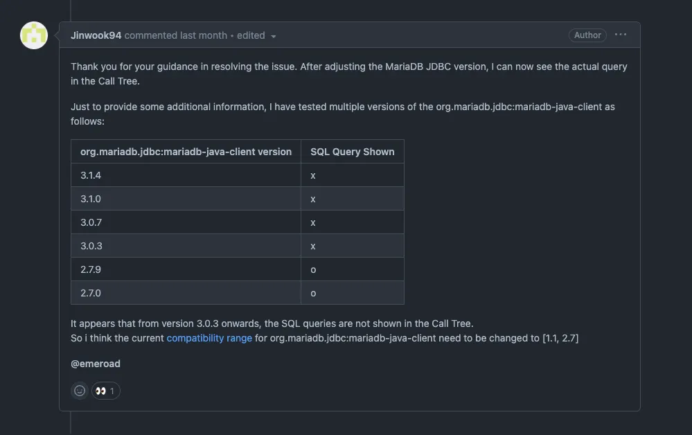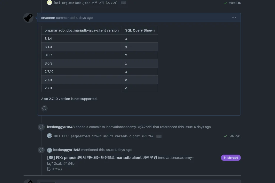 우리가 이걸보고 고쳤다 하는 commit 과 버전확인을 하나 더 달아뒀다..