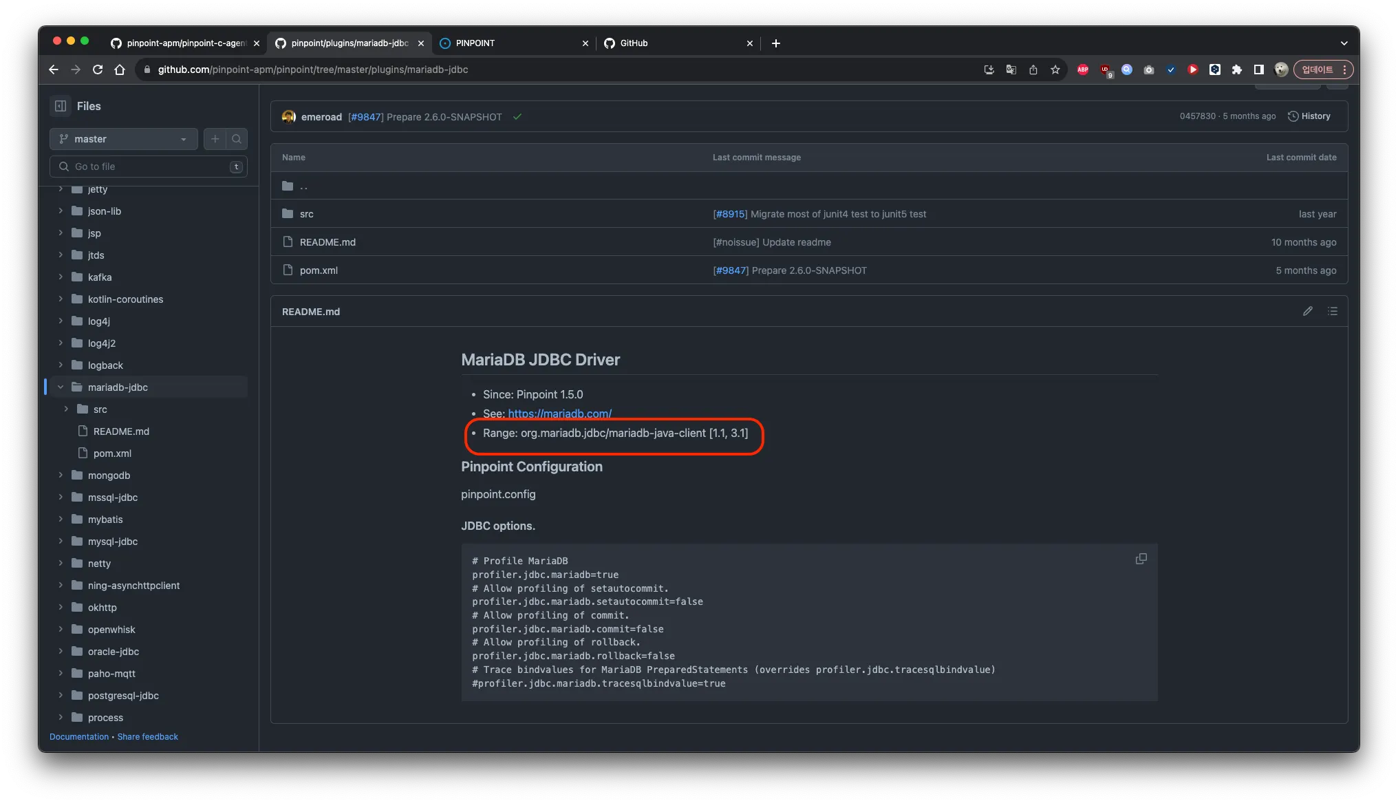 Q. Pinpoint 를 설치했는데 mariadb가 안보여요