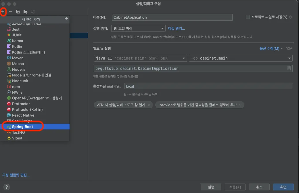 SpringBoot 를 실행하는 환경설정 템플릿을 만드는 메뉴이다.