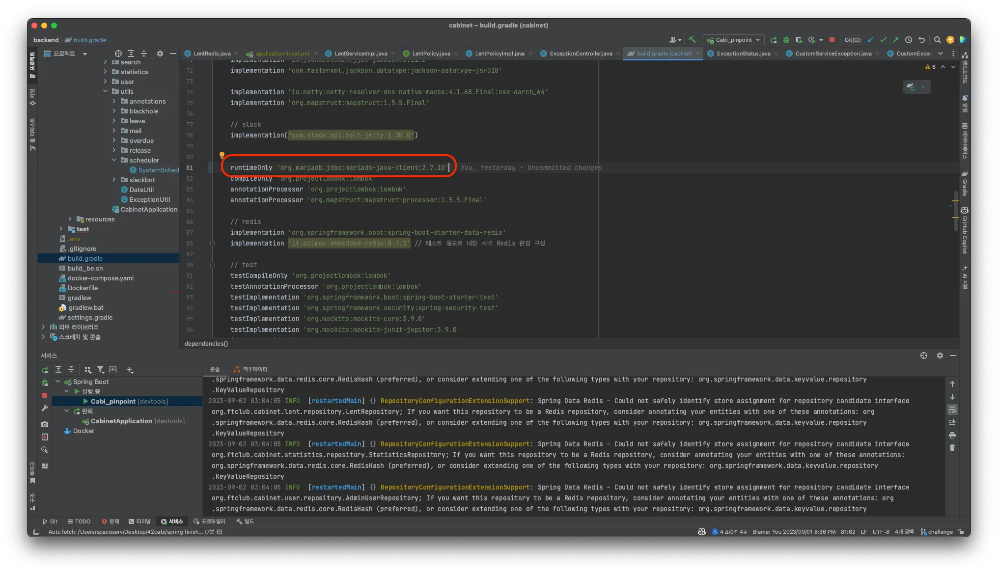 여기서 제알 바깥 디텍토리의 docker-compose.yml 을 수정해야한다
