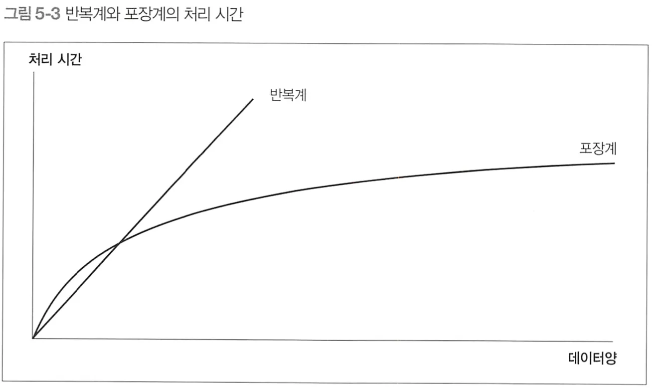 반복계는 (처리 횟수 * 처리 시간)이므로 선형적이다.