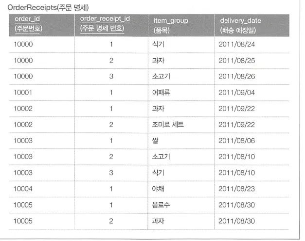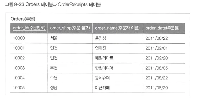 일대다 관계인 Orders테이블과 OrderReceipts 테이블이 있다.