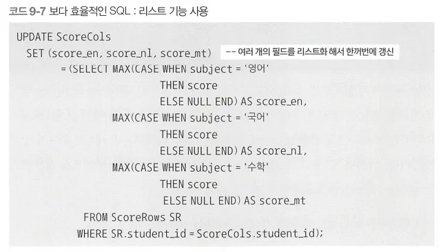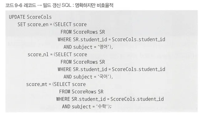 → 갱신과 관련된 SQL 구문은 비효율적이고 성능이 좋지 않은 방식으로 작성된다.