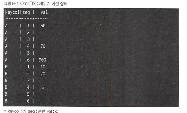 이전 레코드와 같은 값을 가지는 경우 val 필드의 값이 NULL로 되어 있다.