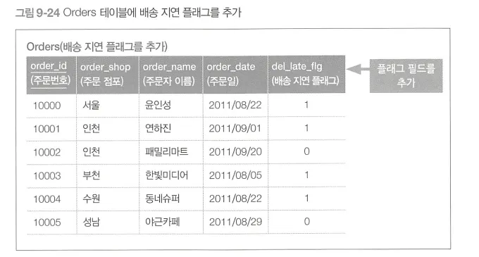반면, 다음과 같이, Orders 테이블에 배송 지연 플래그를 필드로 추가하면, 문제를 한층 쉽게 해결할 수 있다.