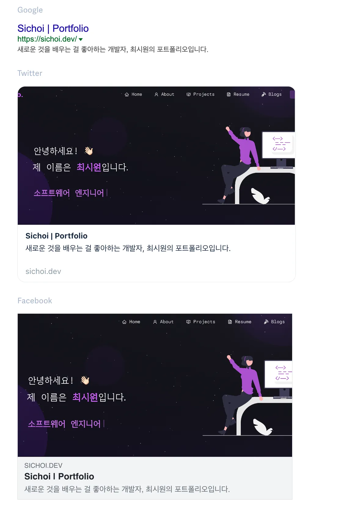 <meta property="og:description" content="새로운 것을 배우는 걸 좋아하는 개발자, 최시원의 포트폴리오입니다." />