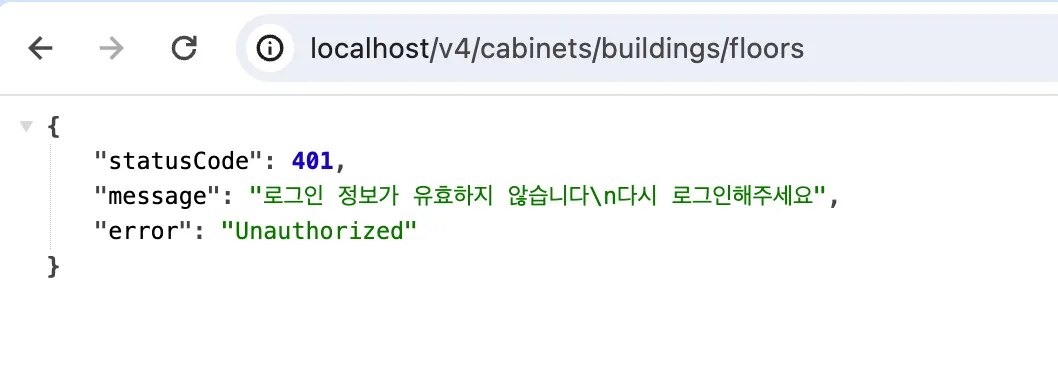 백엔드 서버에서는 인증 수단없이 들어온 요청에 대해 401 에러를 응답해요.