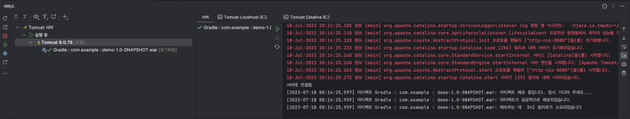 Tomcat 서버를 실행하여 이런 화면이 나온다면 성공한 것이다! (무섭게 빨간 글씨로 되어 있는 부분이 있는데 내용을 읽어보면 단순 로그이다..