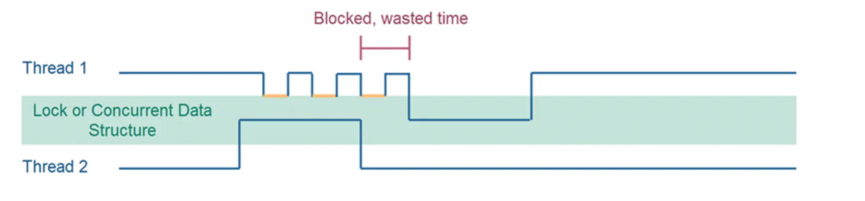 락을 놓고 경쟁하는 상황이 발생하면 순차적으로 처리함과 동시에 컨텍스트 스위칭도 많이 발생하므로, 확장성(scalability)과 성능을 떨어뜨리는 원인이 된다.