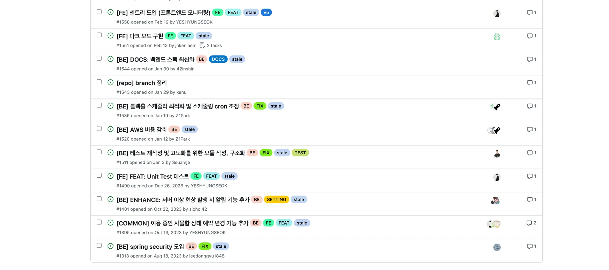 이렇게 워크플로우가 실행되면, 오래된 이슈와 PR에 stale 라벨이 붙는 것을 확인할 수 있었어요.