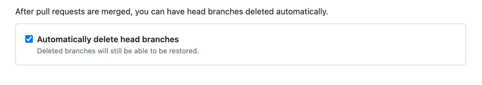 merge된 브랜치를 자동으로 지우는 것은 깃허브에서 자체적으로 제공해주어 허용하는 것으로 설정을 변경했어요.
