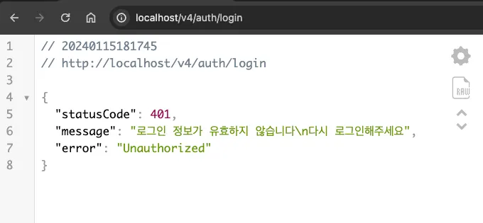 로그인이 필요한 API 엔드포인트에, 로그인 없이 요청을 보내면, 401 에러가 아닌 500 에러를 뱉는다.
