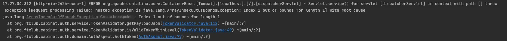 디버그로 따라가보니, getPayloadJson 에서 토큰 없음으로 throw 되는 곳이 한군데 더있었다.