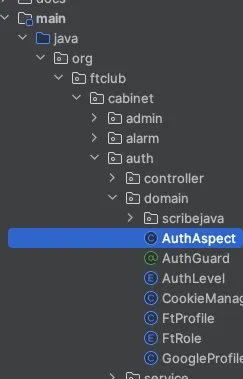 @AuthGuard, @UserSession 등등 유저 인증/인가와 관련된 AOP 부분을 확인해보자.