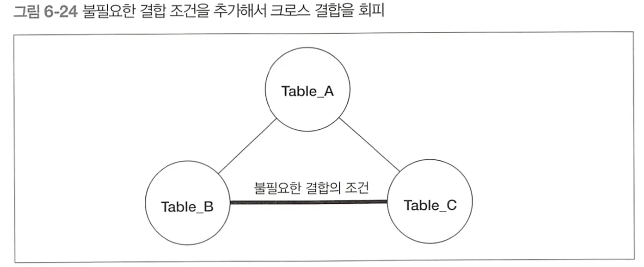 이를 위해 불필요한 JOIN 조건을 걸어서 의도한 대로 JOIN하도록 할 수 있다(어쩌면 실행계획을 지정하는 hint와 비슷한 행위를 하는 것일지도).